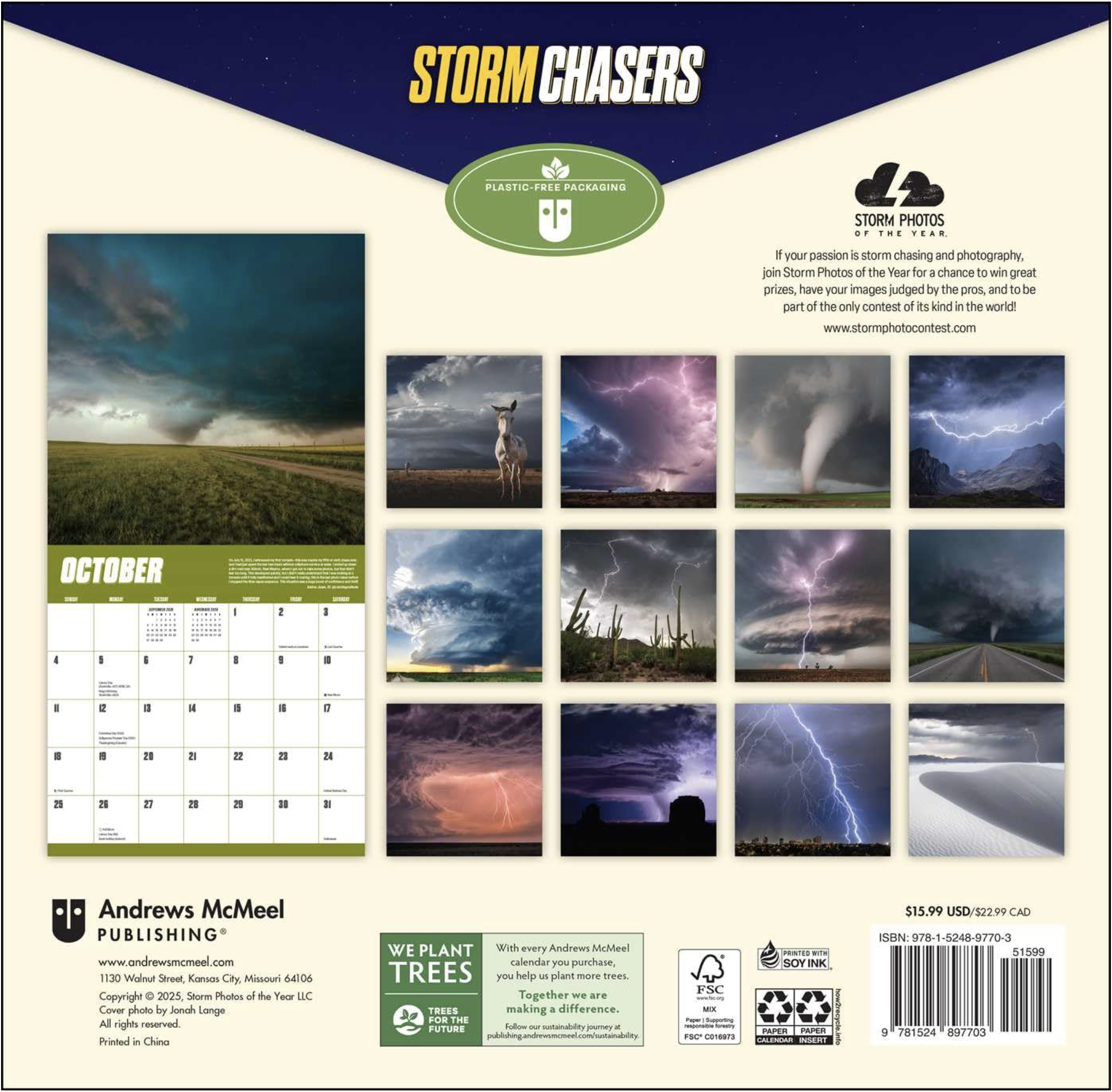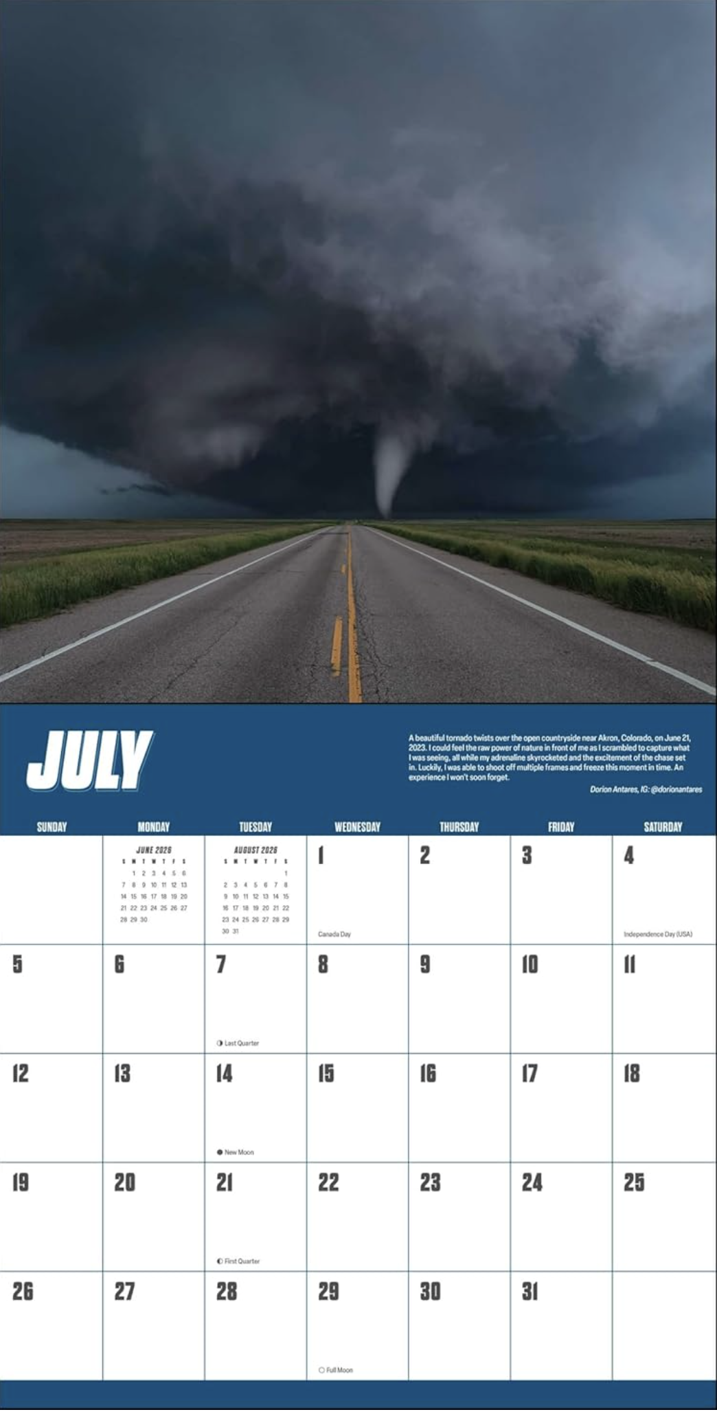 From sky-splitting lightning strikes and awe-inspiring supercells to the terror-inducing moment the tornado turns toward you, the storm chasing community sees it all—from up close. Any of these images would be a once-in-a-lifetime photo for anyone else, but each month of Storm Chasers 2026 Wall Calendar features a winning entry from the most recent Storm Photo of the Year Contest, judged by other pioneering storm photographers. Along with the where-what-when, get the chasers’ own words on what it was like to capture each epic moment.